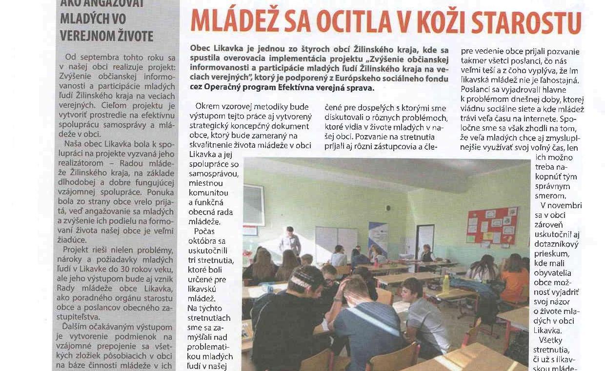 V Likavke sa vytvára obecná rada mládeže